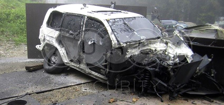 • 15 кг ТНТ на расстоянии 2 м сбоку от автомобиля, высота 1 м